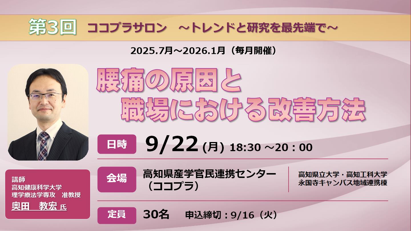 第3回ココプラサロン「腰痛の原因と職場における改善方法」