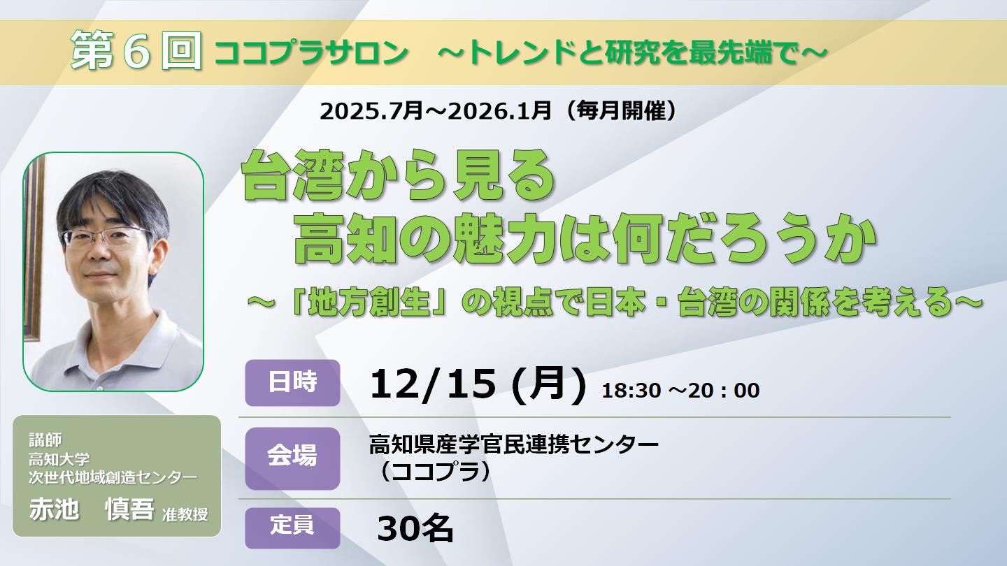 第6回ココプラサロン「台湾から見る高知の魅力は何だろうか ~「地方創生」の視点で日本・台湾の関係を考える~」